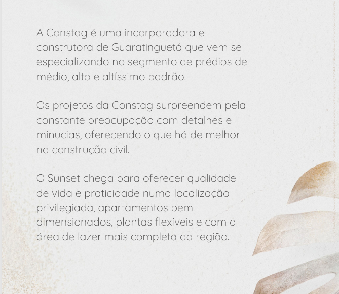 Sunset Residence, confira está oportunidade que será entregue em Setembro de 2027 na cidade de Guaratinguetá.