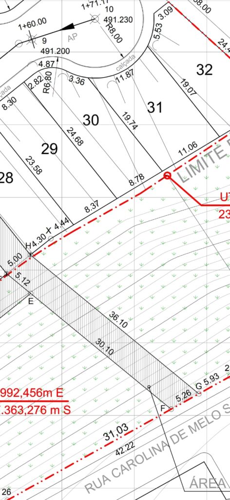 Na parte dos fundos, faz divisa com a área verde e mais embaixo com o almoxarifado.