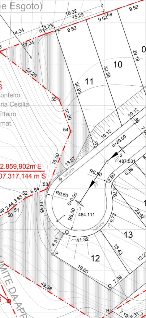 A lateral direita, olhando de frente não há vizinho, pois é o final da rotatória. A parte da esquerda da Paz divisa com o lote 13.